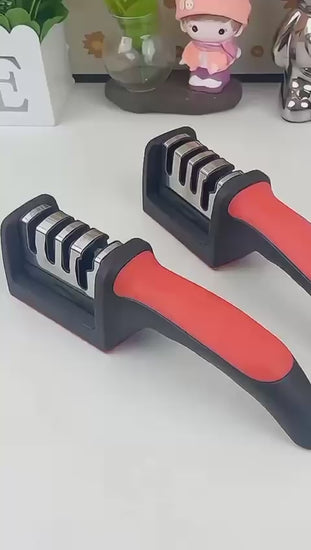 Keep your blades razor-sharp with the4 in 1 Professional Red & Black Knife Sharpener, a must-have addition to yourkitchen accessoriesandkitchen utensils. Designed with four precision sharpening stages, it ensures your knives and scissors stay perfectly honed for effortless cutting. Combining safety, durability, and ease of use in one sleek design, this sharpener is the perfect tool to elevate your everyday kitchen experience.